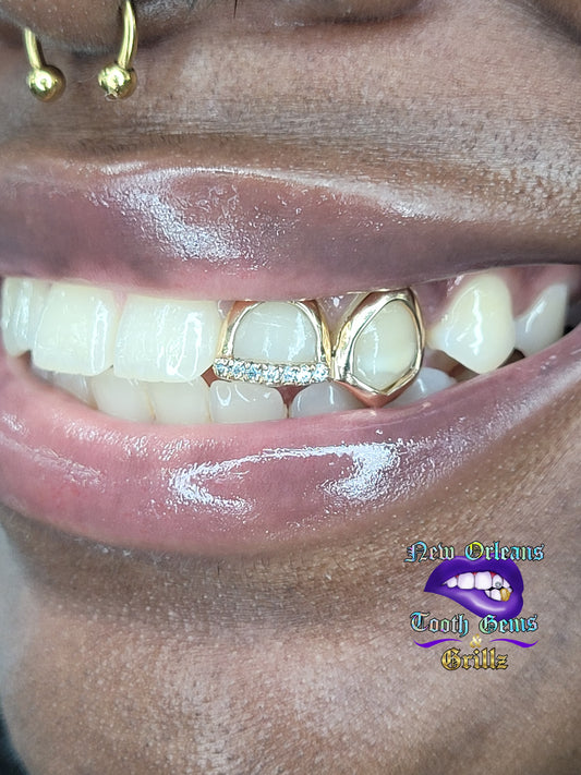2 Teeth Grillz (Connected)#5 Classic Open Face/Heart Open Face
